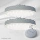 Télécommande avec un bouton qui gère jusqu‘à 8 spots ensemble.