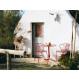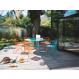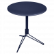 Guéridon Fermob à plateau plein en tôle acier facilement démontable. Son piètement est en fil acier.