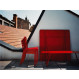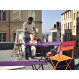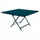 Table pliante avec piètement acier et plateau plein tôle acier sans trou de parasol. Places Assises : 8
