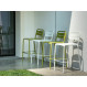 Tabouret empilable (jusqu'à 8). Structure et assise réalisées en tubes métalliques. Siège et dossier en tôle galvanisée.