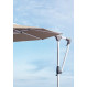 Le parasol est équipé d'une manivelle permettant une ouverture, fermeture et inclinaison faciles de la toile. Celle-ci peut être inclinée jusqu’à 45° de chaque côté, vous permettant ainsi de l’ajuster en fonction de la position du soleil. La manivelle est située à une hauteur de 125 cm, offrant un accès confortable pour manipuler le parasol. La hauteur sous la toile est de 205 cm, ce qui permet de bénéficier d’une grande liberté de mouvement sous celle-ci.