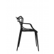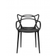 La chaise Masters présente un design moderne avec des lignes fluides et une silhouette unique, caractérisée par un mélange de formes classiques revisitées. La version noire, simple et raffinée, s'intègre facilement dans divers types d'intérieurs ou d'extérieurs, ajoutant une touche de style tout en restant discrète et polyvalente.