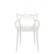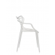 La chaise Masters présente un design moderne avec des lignes fluides et une silhouette unique, caractérisée par un mélange de formes classiques revisitées. La version blanche, sobre et lumineuse, s'intègre facilement dans divers types d'intérieurs ou d'extérieurs, apportant une touche de fraîcheur et de simplicité tout en restant polyvalente.