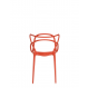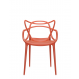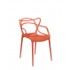 La chaise Masters présente un design moderne avec des lignes fluides et une silhouette unique, caractérisée par un mélange de formes classiques revisitées. La version rouge orangé, dynamique et chaleureuse, apporte une touche de couleur vive qui s'intègre facilement dans divers types d'intérieurs ou d'extérieurs, ajoutant énergie et style tout en restant polyvalente.