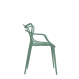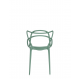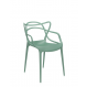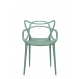 La chaise Masters présente un design moderne avec des lignes fluides et une silhouette unique, caractérisée par un mélange de formes classiques revisitées. La version vert sauge, douce et apaisante, s'intègre facilement dans divers types d'intérieurs ou d'extérieurs, apportant une touche de sérénité et de fraîcheur tout en restant polyvalente.