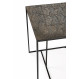 La finition particulière du plateau de la table est réalisée avec des poudres minérales, de l’eau, de la terre, des pigments de couleur naturels et des poudres métalliques.